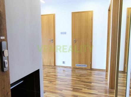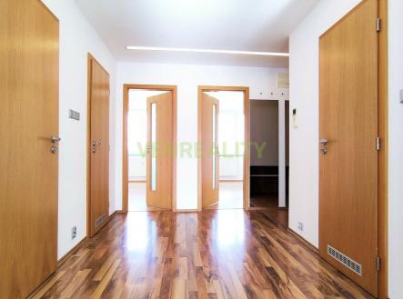 Na první pohled byt zaujme svým dispozičním uspořádáním, které vzniklo v rámci jeho rekonstrukce. Interiér bytu tvoří vstupní zádveří, s úložným prostorem v podobě menší vestavné skříně, na které navazuje prostorná středová chodba, ze které je vstup do všech ostatních místností, včetně praktické šatny, dvou ložnic, obývacího pokoje s kuchyňským koutem, jehož součástí je plně vybavená kuchyňská linka, dále z koupelny s vanou a samostatné toalety. Příjemné posezení s výhledem do zeleně Vám poskytne prostorná lodžie s jižní orientací, přístupná z obývacího pokoje.